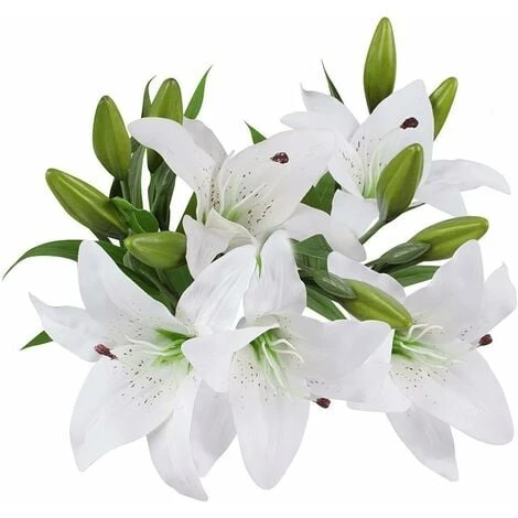 Fiori Artificiali, 5 Pezzi Real Touch Lattice Fiori Di Giglio Artificiale In Vasi Bouquet Da Sposa/Decorazioni Per La Casa/Festa/Disposizione Di Tombe (Bianco)