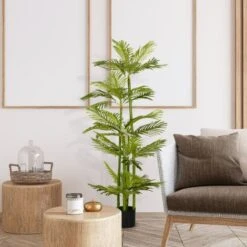 HOMCOM Pianta Artificiale Di Palma Da 140 Cm Con Vaso, Per Interni Ed Esterni, Verde