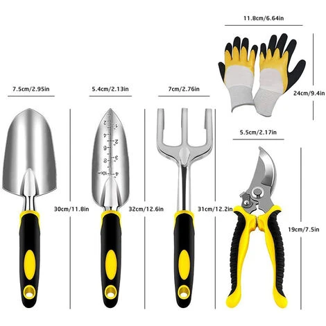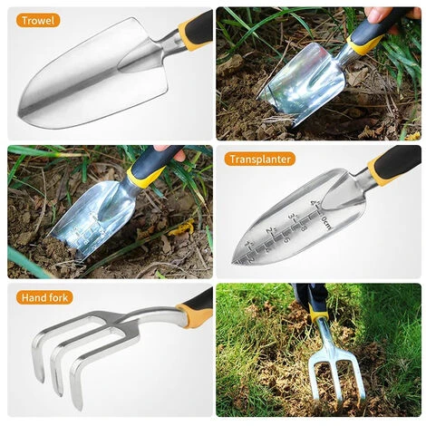 -Gli attrezzi da giardino sono realizzati in lega di alluminio di alta qualità, difficili da arrugginire, leggeri e comodi da usare.