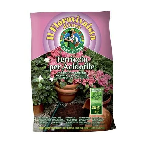 Ideale per il rinvaso e la coltivazione delle azalee, rododendri, ortensie, gardenie, felci, erica, e in genere per tutte quelle piante che necessitano di terricci acidi e fertili. Composto da torba bionda e bruna (50%), stallatico maturo, miscela di materiali vegetali.