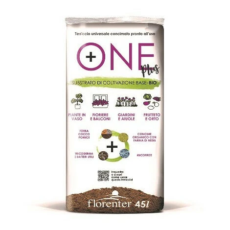 Grazie a queste componenti ONE PLUS si posiziona nel mercato come un substrato professionale di alta gamma, consentito in agricoltura biologica e versatile tanto da poter essere impiegato con ottimi risultati su ornamentali in vaso e in aiuola, pianta da interno, orto e frutteto. La sua iniziale dotazione in nutrienti consente di rinunciare alla prima concimazione intervenendo solo a distanza di 6 mesi.