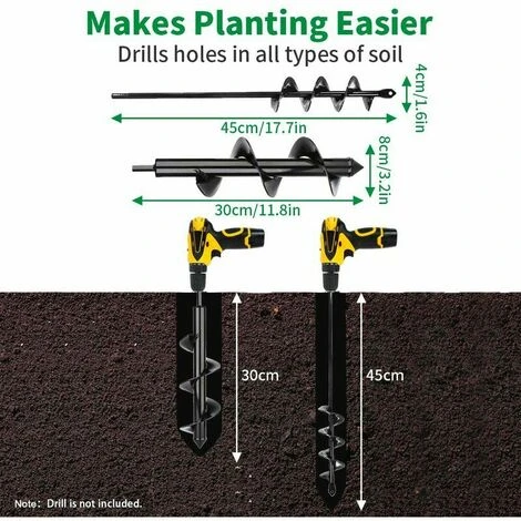 - < li>Risparmia tempo – Si attacca a uno standard trapano elettrico o a batteria. Questa punta da trapano a spirale ti aiuta ad arare in profondità nel terreno solido del giardino, risparmiando fatica e tempo.